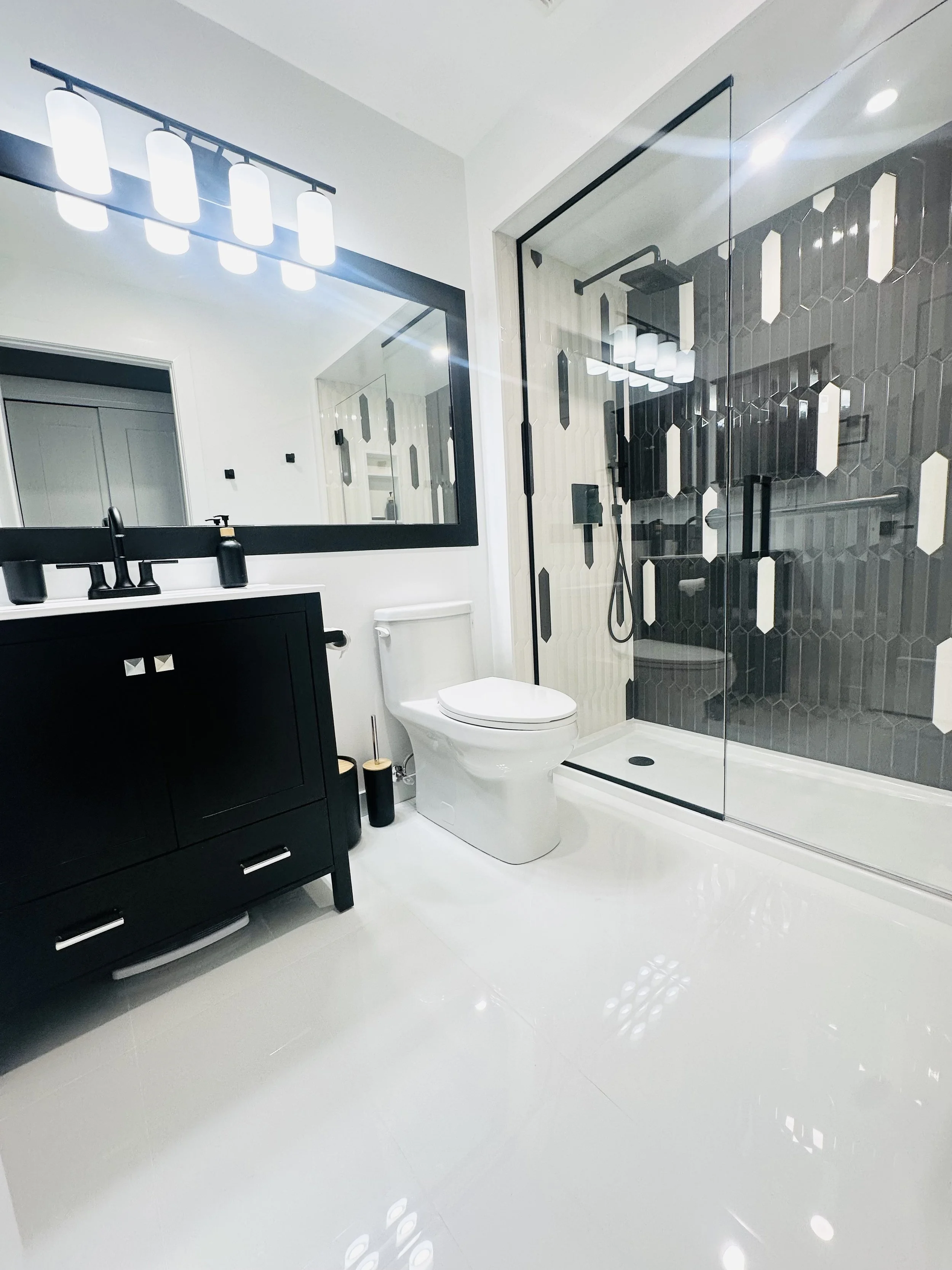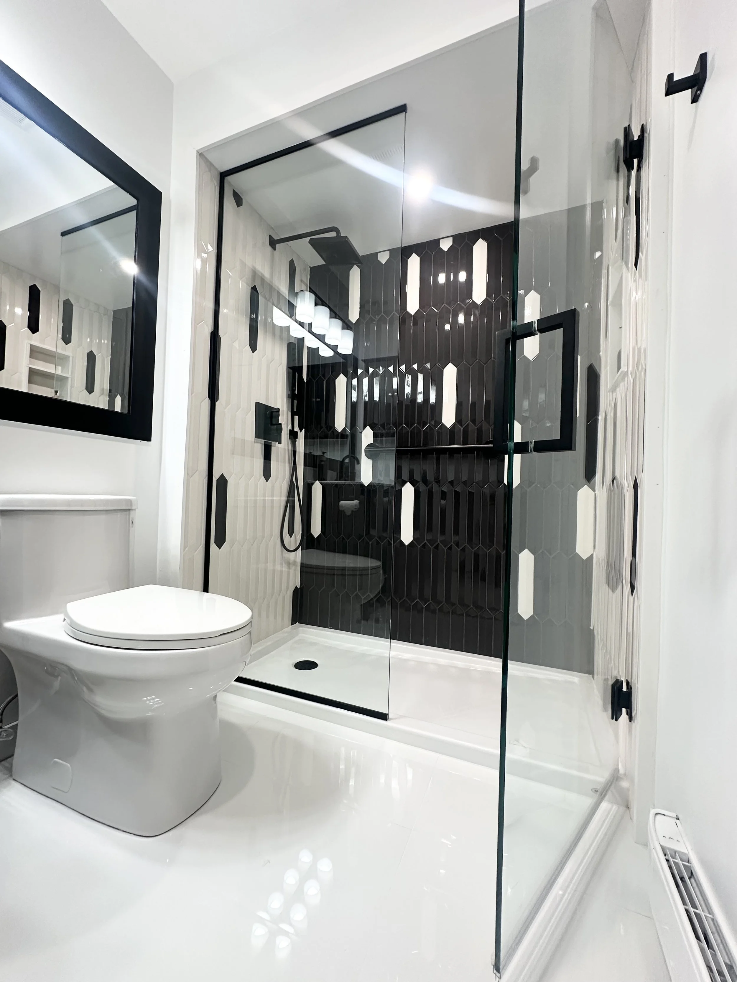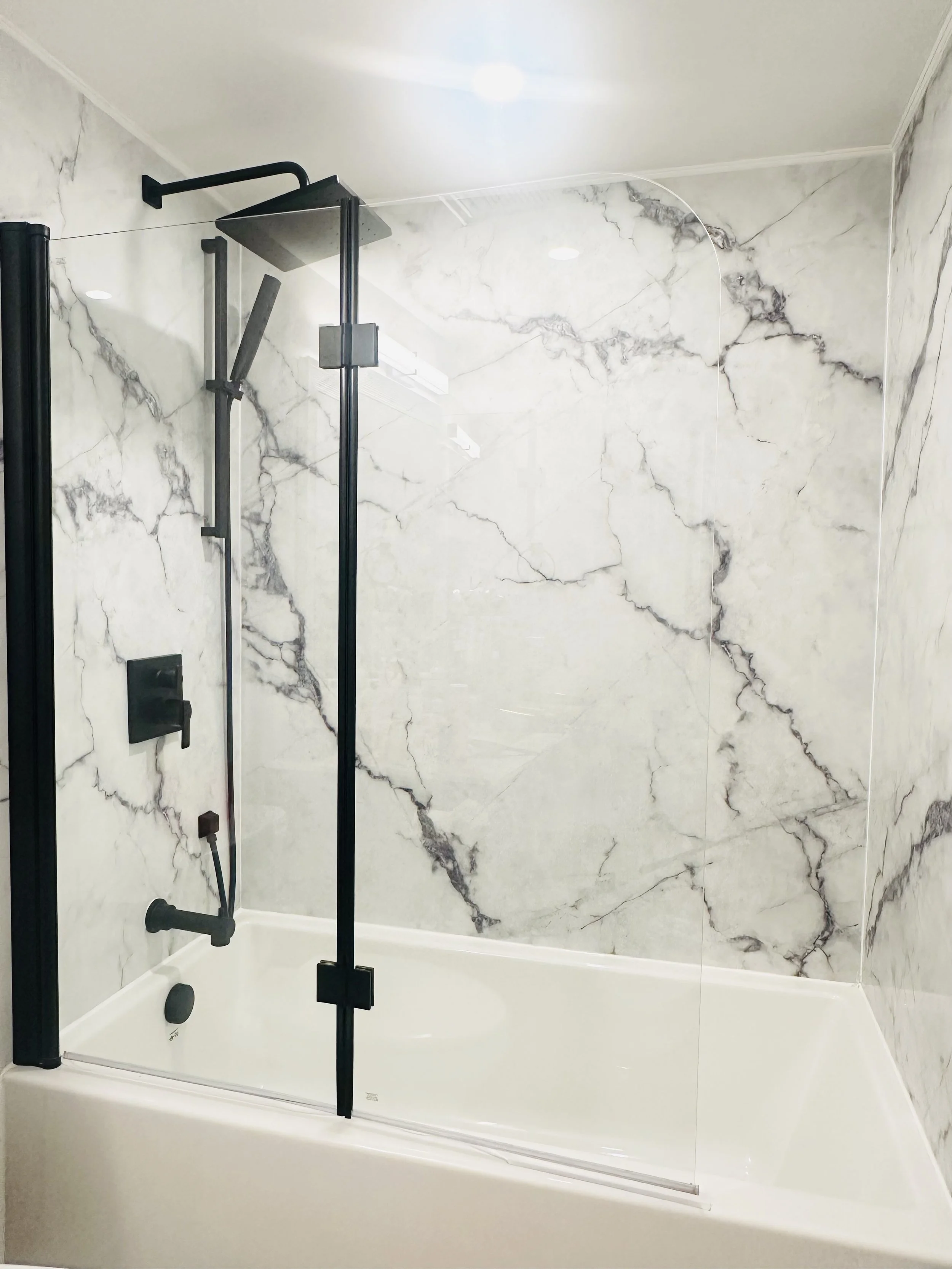 We install pivot glass as an option for your tub-shower, creating a modern, clean, and contemporary finish.
